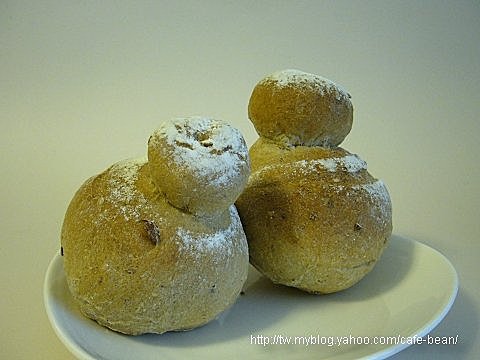 這是香菇頭麵包的成品圖,做一對一起吃,超甜蜜
