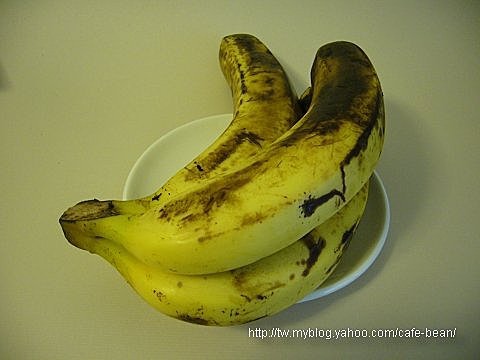 先不管木村的Mr.brain是怎麼推銷香蕉的,就版主本身而言,是超愛吃香蕉的,所以準備功夫也不能馬乎,首先先從食材的挑選做起。而香蕉蛋糕的主角就是香蕉,不能用新鮮的香蕉要用熟到快爛的香蕉才能有又軟又香的香蕉泥來做原料,所以走趟賣場或是市場,表面黑點點一堆的香蕉又便宜又好吃,就多買一點回來使用吧.