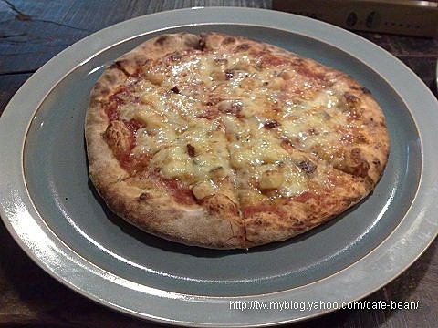 這家店標榜很多用具與食材都與有機或是環保有關,但我還是覺得有些不太方便的,像是吃pizza沒附餐具(刀、叉),只能用手抓著吃,若是男生還好,若是遇到比較愛乾淨的女生恐怕也會傻眼吧!這裡的pizza的尺寸不大,女生一個人吃剛剛好,若是男生吃可能要吃2個才會飽。還有,店裡的 pizza 竟然沒有肉類可以選,店招牌也沒有寫,只有進去坐下來看了看 menu 後才知道沒有肉類的pizza可吃