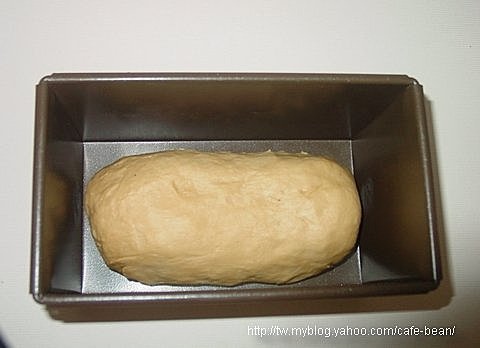 揉好成球狀的麵包再放著鬆馳20分鐘,再桿平,去除不必要的空氣與氣泡,再捲成長條狀,然後放進土司模內醱酵,醱酵的時間控制在2個小時之內,原則上等到麵團膨脹到原來的二倍大或是土司模的8分滿位置時,就可以準備放入烤箱烘烤了。