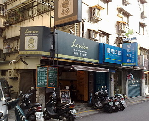 這一天,原本是想去吃下午茶,順便散散心、聊聊天的,只是在走進蛋糕店前的路上猶豫了一下,心裡OS的說:「這家蛋糕店的咖啡很苦又不好喝,乾脆先去喝杯咖啡再來吃蛋糕好了」,所以原本要前往蛋糕店的腳縮了回來,轉戰馬路對面巷子裡的一家不起眼的咖啡店--[路易‧莎咖啡(Louisa)]。