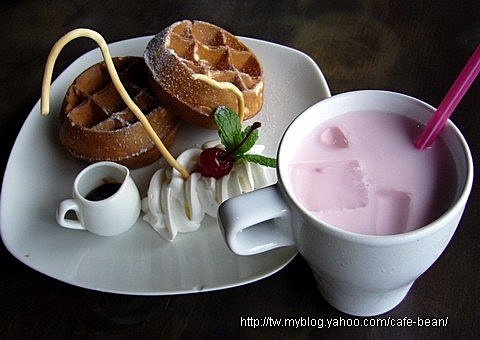 若不喝咖啡,也可以點杯草莓牛奶配鬆餅來吃吃,濃濃的巧克力醬淋在脆脆的鬆餅上感覺特別好吃,再喝口酸酸甜甜的草莓牛奶,整個心情都好了起來呢!!