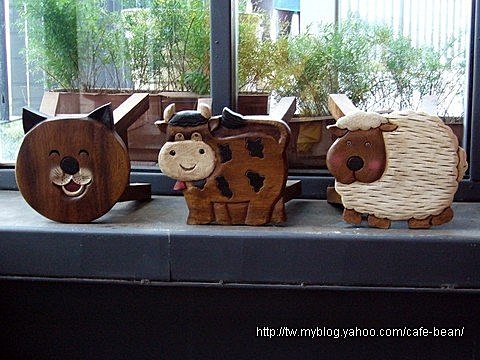 走在一樓往二樓的樓梯,在樓層板的空間裡放著三張不能坐的動物椅,每一張都笑口常開,真的很可愛,我想,這種椅子還是做裝飾比較好,拿來坐,太可惜了~