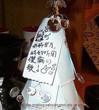 這是星巴克裡的許願樹,寫著要好好聽周傑倫的歌,真有意思.